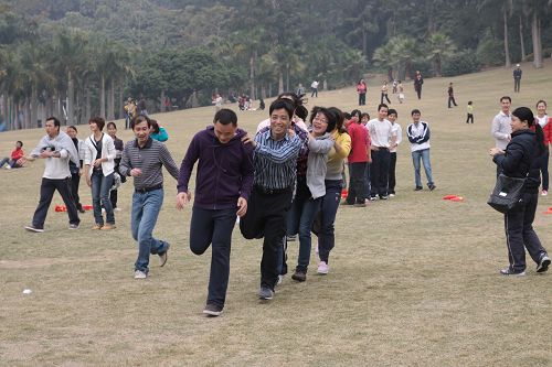 隨著裁判的一聲哨響,戶外活動的首個項目“健步行”點燃了全體人員的熱情。4個小組一路上你追我趕,爭先恐后地從青秀山腳奔向位于山頂的龍象塔。其中在最引人注目的拔河比賽里,每個小組各派出6男6女“精兵強將”代表參賽,雙方隊員精心布陣,手心緊拽繩子,腳底使勁抓地,彎腰側身,絲毫不敢放松。伴隨著啦啦隊的吶喊聲,紅綢一旦越過紅線,勝利的一方歡呼、擊掌、擁抱、空中跳,喜悅之情溢于言表,充分享受著比賽的樂趣和團隊的協作精神。此次戶外活動還有“三人綁腳跑”、“鏈接加速”、“豬八戒背媳婦”等別開生面又精彩有趣的活動,精美豐富的獎品更是讓員工眉開眼笑,滿載而歸。