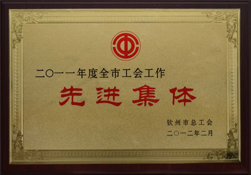 金和公司制煉車間工會小組被評為欽州市“2011年度全市工會工作先進集體”
