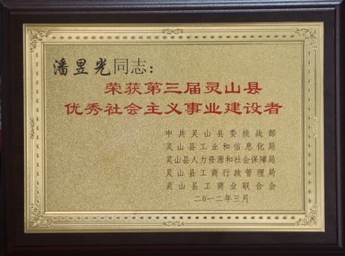 湘桂集團(tuán)董事局董事、湘桂房地產(chǎn)公司法人代表潘昱光被授予“靈山縣優(yōu)秀社會(huì)主義事業(yè)建設(shè)者”榮譽(yù)稱號