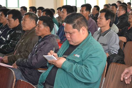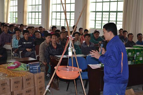 3月24日,美國杜邦公司農藝師何道成進行了螟蟲害防治培訓,詳細講解了螟蟲的生長特點與危害,并現場教授了許多防治螟蟲害的操作方法。靈山縣農業局副局長盧世任、農業局植保站站長勞恒,武利公司全體農務人員與部分蔗農代表參加了培訓。