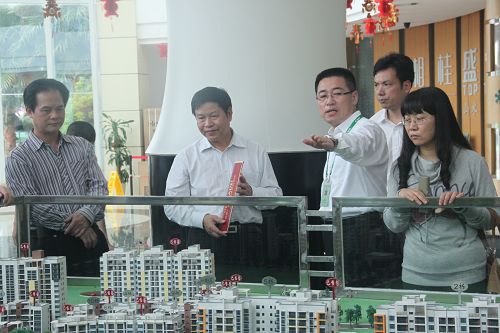 自治區統計局副巡視員梁杰才、區黨委政策研究室綜合處處長黃蘭喜、靈山縣縣委副書記方建安、靈山縣房產局局長潘能鋒陪同參觀考察。