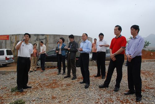 農業部政策法規司產業政策處處長王忠海(前右四)、自治區農業廳政策法規處處長何彬(前右二)等領導聽取湘桂公司孔香屯甘蔗種植示范基地的發展情況。