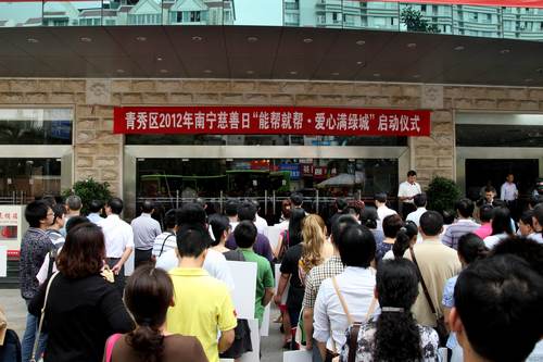 為弘揚中華民族扶貧濟困和南寧城市精神,倡導“以人為本、樂于奉獻”的互助精神,6月8日上午,南寧市青秀區在青秀大廈前舉行2012年“南寧慈善日”暨“能幫就幫·愛心滿綠城”活動捐贈儀式。青秀區區長錢健在捐款儀式上作動員講話,錢區長指出,“慈善一日捐”活動是擴大慈善資金規模、關愛弱勢群體的重要途徑,是奉獻愛心、扶貧濟困的有效平臺,廣大機關干部、企事業單位干部職工、非公企業要積極參與到“能幫就幫·愛心滿綠城”活動中來,能幫就幫,敢做善成,為慈善事業的發展貢獻力量。廣西湘桂糖業集團有限公司副總裁刁曉代表集團總部舉牌捐款3萬元,企業認捐所有款項已匯至南寧慈善總會。