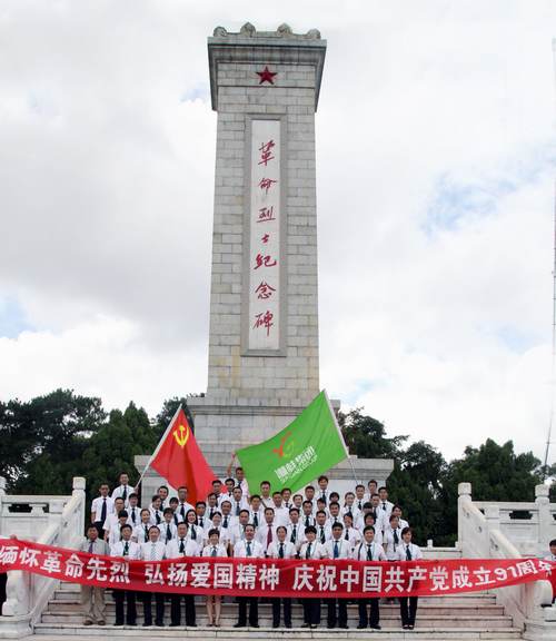隨后,全體員工乘車前往南寧市人民公園瞻仰革命烈士紀念碑,緬懷革命先烈的豐功偉績,全體黨員列隊在紀念碑前莊嚴宣誓,重溫入黨誓詞。勞建銘發表講話,他指出,湘桂集團的發展與壯大,離不開堅持黨的正確領導,離不開黨員在企業中發揮的戰斗堡壘作用。勞建銘強調,在紛繁復雜的國內國際形勢下,我們應更加緊密團結在黨中央周圍,進一步增強責任感、使命感,加強黨性鍛煉,不斷提高黨性修養,艱苦創業,開拓進取,盡最大的努力建設好湘桂事業,以實際行動和優異的成績向建黨91周年獻禮,迎接十八大的召開。