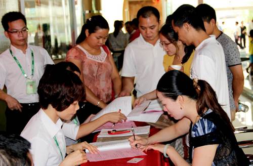 工作人員正在為業(yè)主辦理相關(guān)手續(xù)