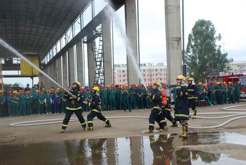 此次消防演練暨培訓活動湘桂公司特別邀請崇左市江州區消防大隊官兵聯合參與。演練模擬蔗渣堆廠房起火情況,火勢迅速蔓延,蔗渣廠房濃煙滾滾,有員工被困暈倒,公司發現火情后迅速報警并啟動防火應急預案,組織人員對火勢進行控制,配合趕到現場的消防官兵撲滅大火、搶救傷員。在安全知識培訓講座上,消防官兵們用生動的事例重點講解了火災發生的原因,及發生火災后的不同搶救方式,同時結合消防應急聯動中心運作模式,就發生火災時該如何撥打報警電話進行詳細講解。