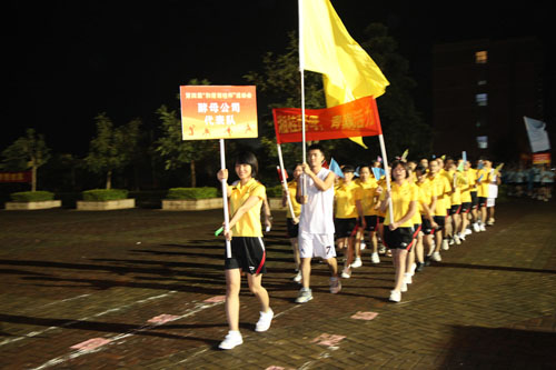 開幕式上,人頭攢動、彩旗飛揚,秋雨擋不住湘桂人奮勇爭先的熱情,各代表隊的運動員們伴著進行曲,邁著矯健的步伐,精神飽滿地步入會場。19時50分,湘桂集團總裁勞建銘宣布:“湘桂集團‘和諧湘桂杯’第四屆運動會開幕!”會場內外頓時掌聲如潮,整個會場變成歡樂的海洋。