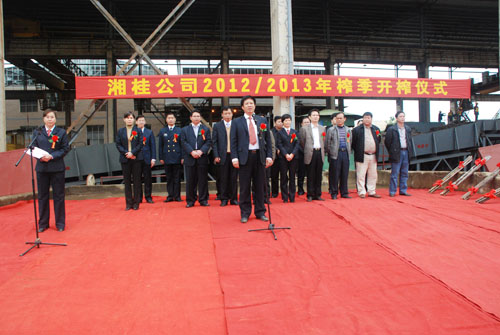 11月29日,湘桂公司隆重舉行2012/2013榨季開榨儀式,湘桂集團副總裁刁曉宣布湘桂公司開榨。