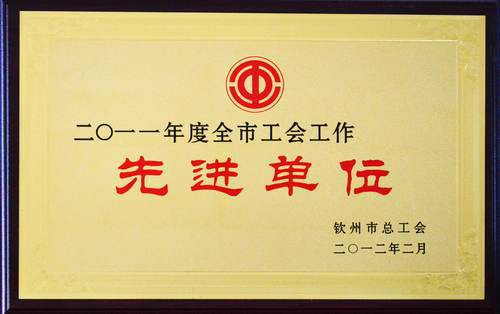 武利公司工會榮獲欽州市2011年度全市工會工作先進單位等殊榮