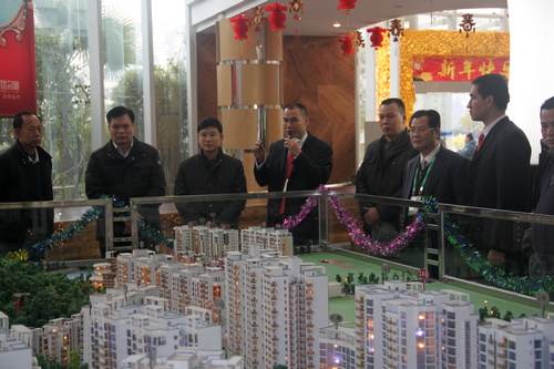 考核組一行查看湘桂•盛世名城小區(qū)沙盤。