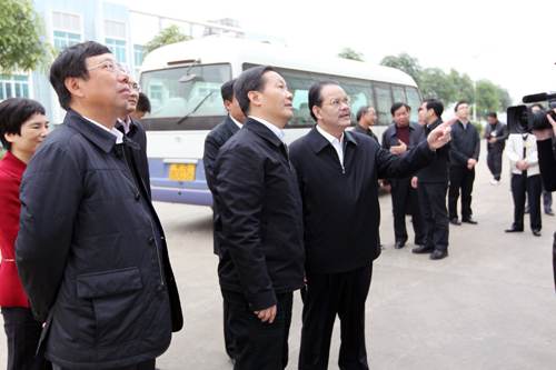 自治區(qū)黨委書記彭清華(前左二)參觀廣西湘桂福萊順酵母有限公司產(chǎn)品。