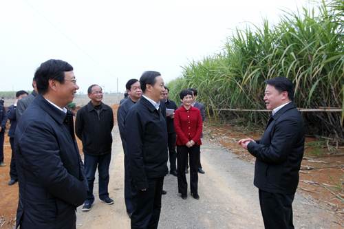 1月14日,自治區(qū)黨委書記彭清華到湘桂循環(huán)經(jīng)濟產(chǎn)業(yè)園、湘桂孔香屯甘蔗種植示范基地考察調(diào)研。