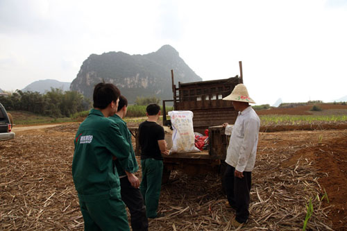湘桂集團監事、集團督察室主任張守輝幫助文利鎮甲叉村蔗農種蔗。