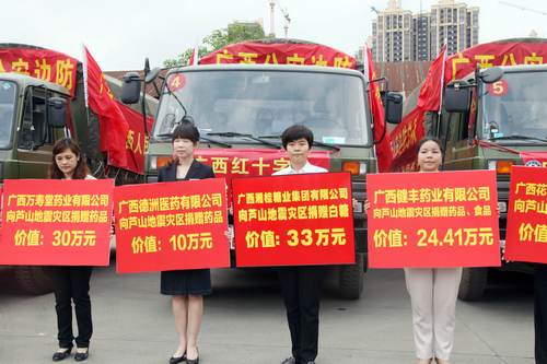 湘桂集團向四川雅安地震災區捐贈物資。
