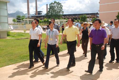 崇左市江州區(qū)委書記黃云革(前右一)、區(qū)長陳光恩(前右二)到湘桂福萊順酵母公司廠區(qū)考察。