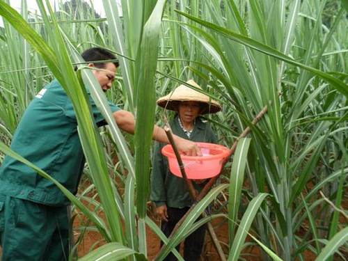 崇左湘桂公司農(nóng)務(wù)人員幫助蔗農(nóng)安裝誘捕器。
