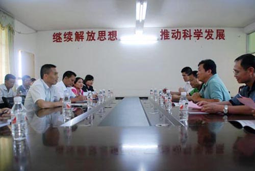 調研組一行與崇左湘桂公司進行了座談,會上,崇左湘桂公司總經理助理李軍向龍斌介紹了公司應對氣候變化,實施可持續發展戰略,大力打造甘蔗循環經濟產業鏈,推進甘蔗節水灌溉示范工程的情況。龍斌對崇左湘桂公司在低碳生產、高效節能、節水灌溉上所做的工作表示肯定,并對公司于2010年獲得國家首批的“資源節約型、環境友好型”示范企業表示祝賀,他表示,湘桂集團提出“一根甘蔗=100億”的糖業循環經濟理念,符合當前建設低碳環保型現代企業的發展方向,希望崇左湘桂公司要充分發揮自身優勢,強化科研能力,提高生產效率,降低生產能耗,促進經濟發展與人口、資源、環境相協調,為應對氣候變化做出新的貢獻。