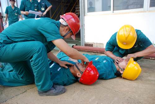 在知識競賽中,9支參賽代表隊在必答題、搶答題、共答題等環節里踴躍作答,比分上你追我趕,場面熱烈;在演練競賽里,各參賽隊隨著現場裁判一聲令下,在得知“失火”的消息后,迅速組織員工逃生,疏散到安全區域,并立刻清點人員,對受傷員工進行緊急施救,同時撥打火警電話,演練競賽效果良好。最終,生產部代表隊獲得安全生產知識競賽冠軍,鍋爐車間代表隊則在消防安全應急演練中折桂。