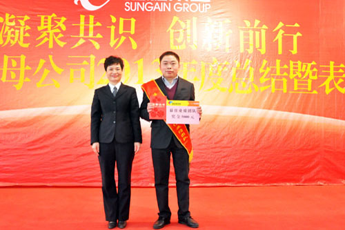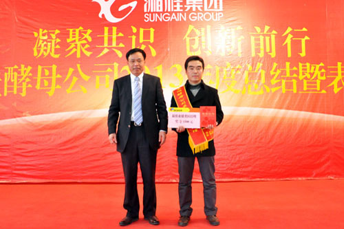 集團監事會監事長陳輝為2013年度酵母公司最佳業績省區經理頒獎。