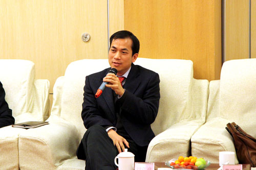 湘桂房地產(chǎn)公司董事楊紹強(qiáng)在座談會(huì)上發(fā)言。
