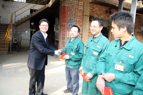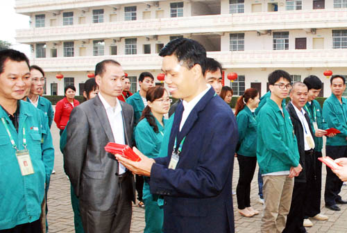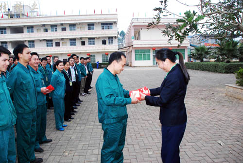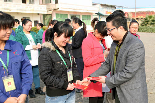 在早會(huì)上,崇左湘桂公司副總經(jīng)理黃春梅代表公司作新年致辭,她表示,2013/2014榨季在公司全體員工的奮力拼搏下,春節(jié)前實(shí)現(xiàn)了三個(gè)突破:一是春節(jié)前榨蔗量突破68萬噸,是歷年來春節(jié)前榨量最高的一個(gè)榨季;二是開榨以來車間雙線生產(chǎn)運(yùn)行至節(jié)前,是歷年來雙線運(yùn)行最長的一個(gè)榨季;三是團(tuán)隊(duì)凝聚力、執(zhí)行力增強(qiáng),公司各部門、車間緊密配合,充分發(fā)揮團(tuán)隊(duì)作用,共同攻堅(jiān)困難,為榨季生產(chǎn)工作順利進(jìn)行付出了巨大的努力。希望廣大員工再接再厲,發(fā)揚(yáng)不怕苦,不怕累、勇挑重?fù)?dān)的精神,共同為完成榨季生產(chǎn)各項(xiàng)目標(biāo)任務(wù)而努力奮斗。隨后,公司班子為員工送上開年紅包,祝大家在新的一年身體健康,工作順利,生活愉快。員工同志們對(duì)公司領(lǐng)導(dǎo)的親切慰問倍感溫暖和鼓舞,紛紛表示新的一年將繼續(xù)兢兢業(yè)業(yè),努力工作,為公司的發(fā)展貢獻(xiàn)自己的力量。