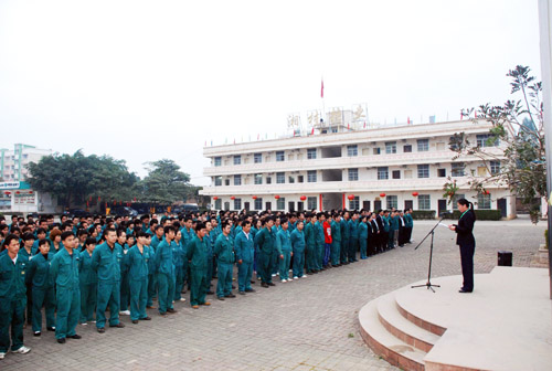 公司領(lǐng)導(dǎo)班子成員,公司全體行政人員及部分車間員工300余人參加早會(huì)。