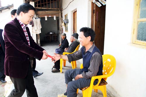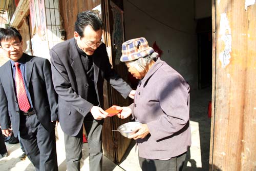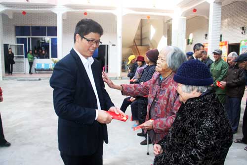 湘桂房地產公司董事楊紹強慰問福利院老人并派送慰問金。