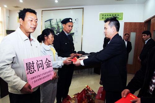 隨后集團總部慰問組成員及湘桂房地產公司、祥和物業公司部門副職以上人員召開了座談 會,表達集團公司對公司發展的支持和期望,對公司困難職工的關懷和關愛,并為困難員工代表送上了慰問品和慰問金。會上,集團總部慰問組成員表達了總部對湘桂房地產公司2013年取得的業績的祝賀,肯定了湘桂房地產公司全體員工的努力,希望湘桂房地產公司全體員工在新的一年精誠團結、再接再厲,圓滿完成集團董事局下達的目標,譜寫湘桂房地產公司的新篇章。