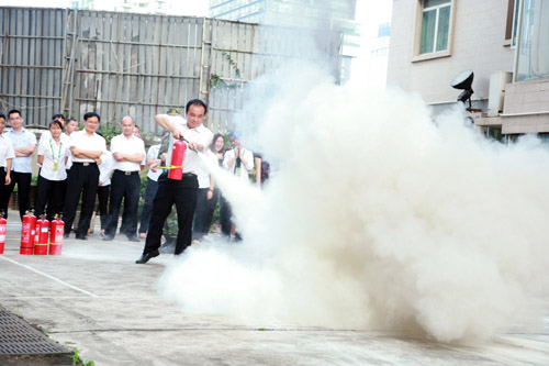 圖為滅火器實(shí)操演練現(xiàn)場(chǎng)。
