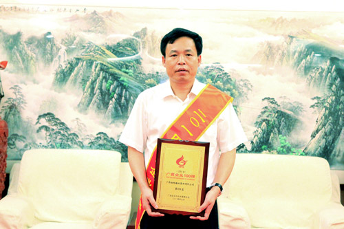 湘桂集團(tuán)榮獲“2014廣西企業(yè)100強(qiáng)”榮譽(yù)稱號,集團(tuán)監(jiān)事會監(jiān)事長陳輝代表集團(tuán)領(lǐng)獎。
