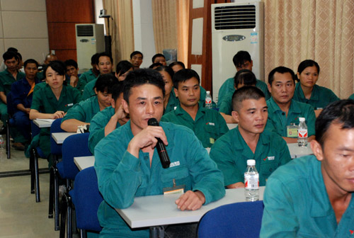 圖為互動交談中班組長代表發言。