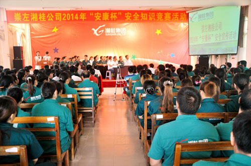 為深入貫徹落實“安全第一、預防為主、綜合治理”的安全管理方針,推動安全文化建設,8月12日—13日,湘桂集團下屬子公司廣西崇左市湘桂糖業有限公司(簡稱崇左湘桂公司)開展2014年“安康杯”安全知識競賽活動。