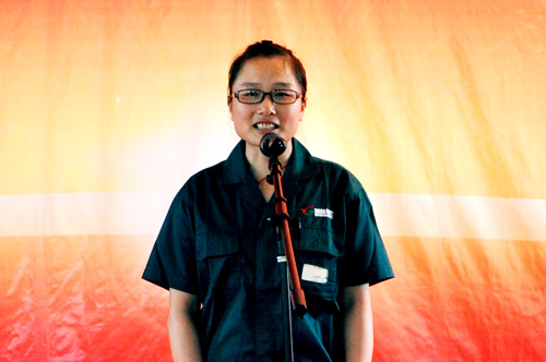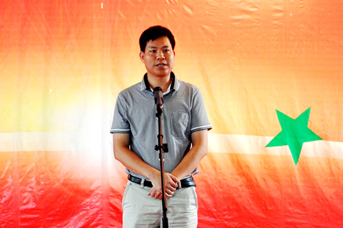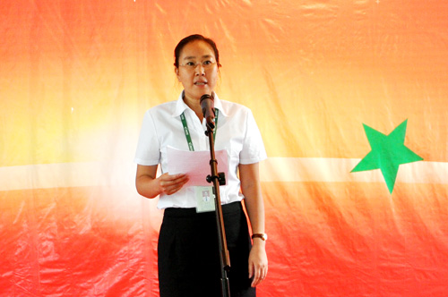 圖為崇左湘桂公司總經理黃春梅作活動總結講話。