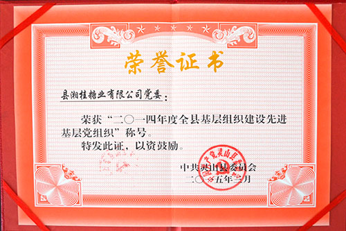 近日,湘桂集團下屬子公司廣西靈山縣湘桂糖業(yè)有限公司(簡稱靈山湘桂公司)黨委被靈山縣委授予“2014年度全縣基層組織建設(shè)先進基層黨組織”稱號,這是對靈山湘桂公司黨建工作的肯定與鼓舞。