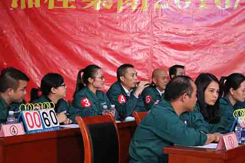 比賽中,來自集團下屬三家制糖公司和房地產公司的四支代表隊進行了激烈角逐,參賽選手們準備充分、精神飽滿、積極踴躍,比賽分數你追我趕,尤其是搶答題與風險題環節,激烈而精彩,將競賽推向高潮。選手們賽出智慧,賽出水平,賽出風格,充分展現了湘桂員工良好的精神風貌。現場觀眾也積極參與互動,整個比賽過程精彩不斷。
