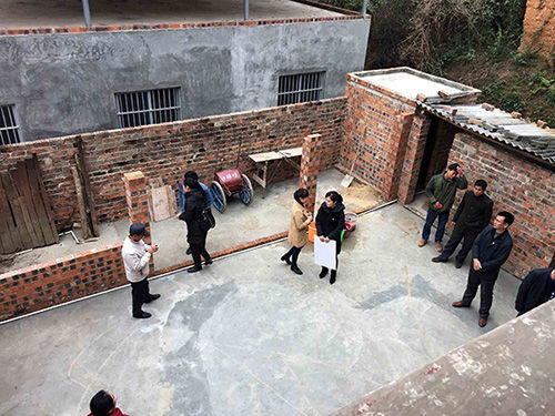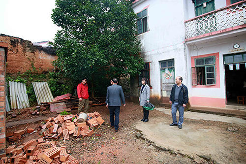 圖為扶貧工作小組第一次到楊作林家中慰問,右三為楊作林患病妻子。