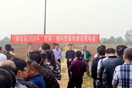浦北縣2018年“雙高”糖料蔗基地現場會議暨甘蔗機械種植演示會在浦北湘桂公司蔗區召開