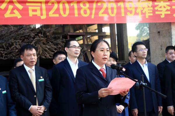 江州區(qū)委副書(shū)記、區(qū)長(zhǎng)王耀雷在開(kāi)榨儀式上致辭,王耀雷對(duì)崇左湘桂公司自2000年扎根江州、扎根崇左經(jīng)營(yíng)發(fā)展以來(lái)在承擔(dān)社會(huì)責(zé)任、助力脫貧攻堅(jiān)戰(zhàn)、積極推進(jìn)甘蔗品種改良及蔗區(qū)“雙高”基地建設(shè)、糖業(yè)節(jié)能降耗、降本增效、做強(qiáng)做優(yōu)蔗糖循環(huán)經(jīng)濟(jì)產(chǎn)業(yè)等方面作出的突出成績(jī),對(duì)推動(dòng)江州區(qū)蔗糖產(chǎn)業(yè)發(fā)展及農(nóng)民脫貧致富作出的重要貢獻(xiàn)表示肯定和贊賞。他表示,2018/19榨季,江州區(qū)委、區(qū)政府將繼續(xù)貫徹落實(shí)習(xí)總書(shū)記關(guān)于鼓勵(lì)、支持和引導(dǎo)民營(yíng)企業(yè)發(fā)展的重要指示精神,把產(chǎn)業(yè)發(fā)展和精準(zhǔn)扶貧脫貧攻堅(jiān)戰(zhàn)有機(jī)地結(jié)合起來(lái),依法保護(hù)民營(yíng)企業(yè)的合法權(quán)益,積極為民營(yíng)企業(yè)發(fā)展?fàn)I造良好的法制環(huán)境和營(yíng)商環(huán)境,加強(qiáng)政企合作,共同實(shí)現(xiàn)江州區(qū)、崇左市2018/19榨季工作目標(biāo)。希望崇左湘桂公司認(rèn)真貫徹執(zhí)行崇左市、江州區(qū)的榨季工作部署,搶抓機(jī)遇,再接再厲,開(kāi)創(chuàng)湘桂事業(yè)發(fā)展的新局面,努力為江州區(qū)、崇左市的發(fā)展作出新的、更大的貢獻(xiàn)。