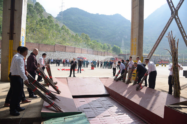 湘桂集團黨委書記、董事會主席勞建銘宣布2018/2019榨季正式開榨,參加儀式的領導、嘉賓向蔗槽投下了新榨季第一捆甘蔗,祝愿小平陽湘桂公司2018/2019榨季開榨大吉。