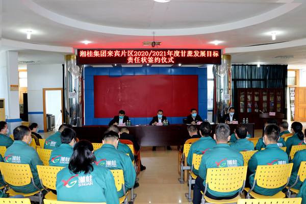 儀式上,集團農務管理中心副總經理巫義琳首先對來賓湘桂公司及小平陽湘桂公司2020/2021年度甘蔗發展目標進行了深入細致地解讀;謝華誠代表集團分別與來賓湘桂公司和小平陽湘桂公司總經理簽訂了《2020/2021年度甘蔗發展目標責任狀》;吳輝、何顯春分別代表來賓、小平陽湘桂公司就完成目標責任狀作表態發言,他們紛紛表示將堅定信心、全力以赴、不折不扣完成集團下達的2020/2021年度甘蔗發展目標任務。
