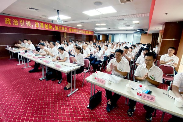 主題黨日活動現場。 今年是中國共產黨成立99周年,為回顧黨的光輝歷史,謳歌黨的豐功偉績,進一步激發黨建工作活力,引導廣大黨員樹牢“四個意識”、堅定“四個自信”,堅決做到“兩個維護”,充分發揮先鋒作用、永葆先進本色,加快推動集團產業高質量發展。2020年7月1日,湘桂集團黨委舉行慶祝“七·一”主題黨日活動,集團黨委書記勞建銘上“初心•使命•奮進 慶祝建黨99周年”主題黨課,集團黨委副書記刁曉主持活動。 活動伊始,全體黨員滿懷忠誠和敬仰重溫入黨誓詞,表達對黨的無限忠誠和熱愛。 隨后,湘桂集團黨委書記勞建銘上“初心•使命•奮進 慶祝建黨99周年”主題黨課。他首先向集團全體黨員及黨務工作者致以崇高的敬意和節日的問候! 勞建銘在黨課中回顧了中國共產黨99年來光輝而曲折的奮斗歷程,特別是黨的十九大以來取得的發展成就及今年疫情防控阻擊戰取得的重大戰略成果;深入學習了習近平總書記關于歷史特別是黨史、新中國歷史、改革開放史的重要論述和全面依法治國新理念、新思想、新戰略十論;全面回顧了湘桂集團貫徹落實習近平總書記重要指示精神的具體措施和參與脫貧攻堅工作取得的主要成績,對下一階段加強黨建工作以及助力打贏脫貧攻堅戰提出了要求。 勞建銘指出,湘桂集團發展到今天,員工能過上幸福安康的生活,全體湘桂人都要感恩黨和國家。湘桂集團始終堅定永遠跟黨走,聽黨話、感黨恩,以習近平新時代中國特色社會主義思想為指導,自覺在政治上行動上同黨中央保持高度一致,深入踐行社會主義核心價值觀,將黨建工作與企業經營管理深度融合,加快推進集團產業高質量發展。 他強調,要突出政治引領,加強黨建工作,繼續推進集團降本增效、深化管理改革,提高工作質量和效率;抓好人才隊伍建設,推動形成能者上、優者獎、庸者下、劣者汰的正確導向,深化人才發展機制改革,實行更加積極、更加開放、更加有效的人才管理機制;強化工作作風建設,堅決克服官僚主義、形式主義,抓好經營管理。集團每一位黨員都要心中有黨、心中有國,把個人奮斗融入時代大潮、融入企業發展,發揮先鋒模范作用,踏踏實實做好本職工作,為實現集團各項經營管理目標而努力奮斗,以優異成績迎接中國共產黨百年華誕。 他表示,今年是決勝脫貧攻堅戰的收官之年,湘桂集團將繼續通過產業幫扶、科技幫扶、新農村建設公益幫扶、就業助學幫扶、精準幫扶等方式,提高扶貧精準度和時效性,增強貧困村農民脫貧致富能力,為決勝脫貧攻堅戰作出應有的貢獻,為實現全面建成小康社會目標,加快建設壯美廣西、共圓復興夢想而努力奮斗! 參加黨日活動的黨員同志紛紛表示,勞書記的講課緊密結合公司實際,緊扣新常態、新形勢、新要求,深刻而生動,與時俱進,催人奮進;參加今天的活動心情激動、很有意義、深受鼓舞,要永遠聽黨話、跟黨走,不忘初心、牢記使命,乘風破浪、勇立潮頭,不斷取得新成績,以實際行動向我們偉大的黨獻上生日祝福。 湘桂集團黨委、紀委委員;崇左湘桂產業園、來賓湘桂、靈山湘桂公司、浦北湘桂公司、合浦湘桂公司、大新湘桂公司黨委,富寧湘桂公司黨總支、都安湘桂公司黨支部書記及委員;集團總部全體黨員;集團公司經營管理領導班子成員、各中心負責人以及各下屬公司經營管理班子成員共110多人參加了主題黨日活動。 .jpg)