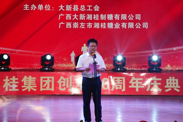 黃漢忠在講話中對湘桂集團創(chuàng)業(yè)發(fā)展20年來所取得的成績表示充分肯定,他說,湘桂集團自2000年扎根大新、扎根崇左經(jīng)營發(fā)展以來,認真貫徹崇左市、大新縣各級黨委、政府的工作部署,依托企業(yè)自身優(yōu)勢,大力發(fā)展甘蔗生產(chǎn),積極承擔社會責任,在扶持發(fā)展甘蔗種植管護、蔗區(qū)道路維修、農(nóng)資補貼、機械化推廣、技術(shù)服務(wù)等方面投入了大量人力、物力和財力,積極推進甘蔗“雙高”基地建設(shè)和訂單農(nóng)業(yè),帶動當?shù)剞r(nóng)民就業(yè)、脫貧、增收,助力精準扶貧工作,在糖業(yè)節(jié)能降耗、降本增效、做強做優(yōu)蔗糖循環(huán)經(jīng)濟產(chǎn)業(yè)等方面取得了突出成績,為推動大新縣乃至崇左市蔗糖產(chǎn)業(yè)發(fā)展及打贏脫貧攻堅戰(zhàn)、實現(xiàn)“六保”“六穩(wěn)”任務(wù)作出了積極的貢獻。黃漢忠表示,大新縣雷平鎮(zhèn)將一如既往地關(guān)心關(guān)注民營企業(yè)的發(fā)展,積極為民營企業(yè)提供全方位的服務(wù)、支持和幫助,營造良好的營商發(fā)展環(huán)境。希望湘桂集團以創(chuàng)業(yè)發(fā)展二十周年為契機,繼續(xù)堅定糖業(yè)生產(chǎn)發(fā)展不動搖,加大改革創(chuàng)新、技術(shù)升級,進一步降本增效,不斷提升企業(yè)自身競爭實力和經(jīng)濟效益,做好“六穩(wěn)”“六保”生力軍。
