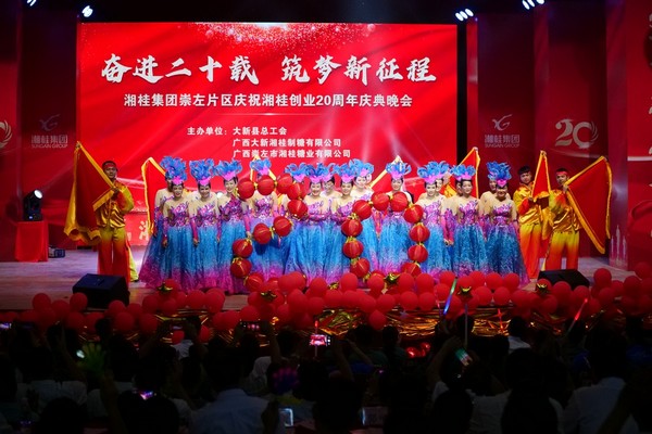 2020年9月10日晚,湘桂集團崇左片區(qū)慶祝湘桂創(chuàng)業(yè)20周年慶典晚會在大新湘桂公司文化城舉行,晚會以“奮進二十載 筑夢新征程”為主題,回顧了湘桂20年來的發(fā)展歷程和成就,充分展現(xiàn)了湘桂人愛黨、愛國、愛湘桂的深厚情懷和激情澎湃、絢麗多彩的湘桂企業(yè)文化。