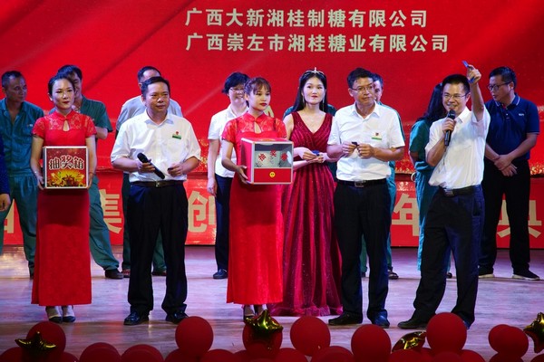 謝華誠在致辭中向關(guān)心和支持湘桂集團發(fā)展的各級黨委、政府及各職能部門、金融機構(gòu)、合作伙伴、廣大客戶及蔗農(nóng)朋友致以崇高的敬意!向團結(jié)拼搏、辛勤付出、默默奉獻的全體湘桂人致以衷心的感謝!向蒞臨慶典晚會的領(lǐng)導(dǎo)、嘉賓、員工同志們表示熱烈的歡迎!他表示,二十年來,湘桂始終堅定“永遠跟黨走”的理想信念,踐行“艱苦創(chuàng)業(yè)、誠信經(jīng)營、回饋社會、奉獻國家”的經(jīng)營宗旨,積極履行社會責任,助力脫貧攻堅,累計投入15.36億元,幫助當?shù)剞r(nóng)民年人均收入從3000元增長到3萬元,用實際行動詮釋了民營企業(yè)的責任擔當!二十年來,湘桂集團及各下屬公司先后榮獲全國先進基層黨組織,全國“五一”勞動獎狀,全國職工教育培訓(xùn)示范點、全國模范職工之家、第十一屆全國職工職業(yè)道德建設(shè)標兵,全國、自治區(qū)萬企幫萬村精準扶貧行動先進企業(yè)等100多項榮譽,被列為廣西區(qū)非公有制經(jīng)濟組織黨建示范單位;連續(xù)多年被列為中國十大制糖集團、中國民營500強,廣西優(yōu)秀企業(yè)100強、廣西民營企業(yè)50強。榮譽的獲得體現(xiàn)了國家、自治區(qū)各級黨委、政府及社會各界對湘桂永遠跟黨走、積極參與精準扶貧工作、勇于承擔社會責任的高度認可。湘桂集團將進一步優(yōu)化制糖產(chǎn)業(yè)布局,做強做優(yōu)蔗糖循環(huán)經(jīng)濟建設(shè),強化“對標定標追標”工作和降本增效、精細化管理,不斷提高生產(chǎn)經(jīng)營管理水平,提高綜合經(jīng)濟效益,為推動廣西糖業(yè)“二次創(chuàng)業(yè)”高質(zhì)量發(fā)展,為建設(shè)壯美廣西,共圓復(fù)興夢想而努力奮斗!