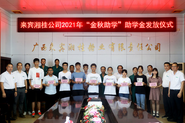8月26日下午,湘桂集團下屬廣西來賓湘桂糖業有限責任公司舉行2021年“金秋助學”助學金發放儀式,資助和獎勵今年考入大學殿堂和高中的公司員工子女。