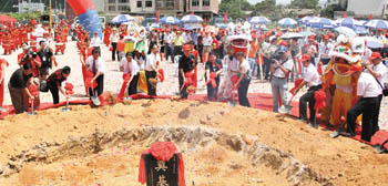 湘桂集團董事局主席勞建銘在講話中表示,靈山自古風(fēng)水寶地,人杰地靈,湘桂人十分熱愛這片景色秀美、人民勤勞的熱土,懷著致富不忘回饋社會、奉獻(xiàn)國家的企業(yè)理念,來到這里開創(chuàng)新產(chǎn)業(yè),回報父老鄉(xiāng)親。他說,湘桂·盛世名城項目能夠順利開工,得益于靈山縣委、縣人民政府的關(guān)心、支持,得益于各有關(guān)職能部門的全力協(xié)助和優(yōu)質(zhì)服務(wù),他代表集團3000多名員工,向各位領(lǐng)導(dǎo)、各位來賓以及新聞媒體的記者們、靈山縣的父老鄉(xiāng)親們表示衷心的感謝,感謝大家多年來對湘桂事業(yè)的關(guān)心、支持和幫助!湘桂集團將以“精益求精、追求卓越”的湘桂精神,全力以赴,打造靈山房地產(chǎn)第一品牌,為靈山的父老鄉(xiāng)親奉獻(xiàn)一個高尚典雅、山水相映、風(fēng)景秀麗、配套齊全、管理先進(jìn)、安全舒適的品牌樓盤,為全面推進(jìn)靈山縣的城鎮(zhèn)化建設(shè),構(gòu)建和諧、文明的社會做出應(yīng)有的貢獻(xiàn)!