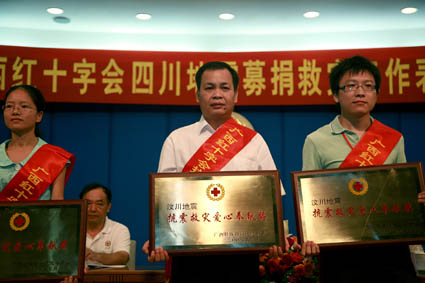 9月24日上午,廣西紅十字會四川地震募捐救災表彰會在南寧舉行,廣西142個在四川地震募捐救災工作中表現(xiàn)突出的先進單位和個人受到表彰,湘桂集團為受表彰單位之一。集團副總裁鄧豪出席了表彰會,并代表集團領(lǐng)取“抗震救災愛心奉獻獎”榮譽匾額。