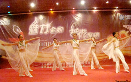 “開門紅,紅四方,漫天鑼鼓敲不夠熱鬧歡暢,漫天喜氣蒸騰出更多夢想……”隨著主持人激情昂揚(yáng)的開場白,喜氣洋洋的舞蹈《開門紅》拉開了晚會的序幕。隨后表演的電子琴《豐收之歌》悅耳動(dòng)聽;舞蹈《好收成》跳出了豐收的喜悅,《家鄉(xiāng)美》、《春天的故事》美倫美煥;獨(dú)唱《只要為你活一天》情懷悱綿,《草原上升起不落的太陽》粗獷悠揚(yáng);小品《現(xiàn)場招秘書》詼諧搞笑;保安員勇武制敵的《擒拿格斗技術(shù)》英武有力;中國移動(dòng)浦北分公司帶來的舞蹈《太湖美》、《魅力四射》同樣精彩紛呈……晚會被一次又一次推向高潮,一陣陣喝彩聲和熱烈的掌聲在禮堂上空回響……