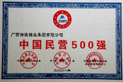 由中國民營企業(yè)聯(lián)合會(huì)、中國統(tǒng)計(jì)協(xié)會(huì)、中國管理科學(xué)研究院企業(yè)發(fā)展研究中心聯(lián)合發(fā)起的2008年度中國民營500強(qiáng)評(píng)審工作已于日前揭曉。廣西湘桂糖業(yè)集團(tuán)有限公司榜上有名,榮獲“中國民營500強(qiáng)”稱號(hào)。