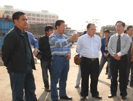 崇左市市長黃克(右二)、副市長黃統高(左一)在湘桂公司總經理朱光彩(左二)陪同下到湘桂公司檢查生產情況。